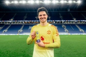 4次扑救完成零封,曼联晒拉门斯与英超官方全场最佳奖杯合照