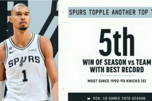 马刺本季5次战胜联盟最佳战绩球队 92-93赛季尼克斯以来最多!