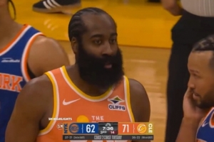 哈登防守打到布伦森面部 后者:老兄你看着点&这太糟了 想打架吗