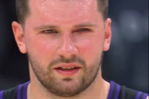很危险!东契奇拿球时被大瓦格纳戳到眼睛 伤口明显