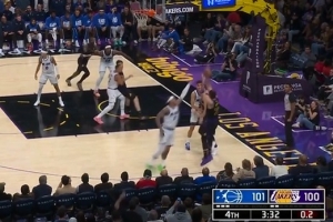 球进灯亮!东契奇高难度三分压哨命中 湖人夺回2分优势