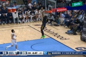 穷追猛打!斯潘塞三分穿针 小佩顿抢断后反扣将优势扩大到22分