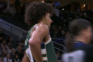 老而弥坚!詹姆斯昨日卡位时被泰特夹住手肘 随后三分颜射申京