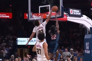 没上场也很有参与感!约翰逊钉板大帽华莱士 掘金替补席吃T