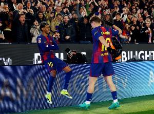 体育资讯2月28日讯 西甲第26轮,巴萨主场迎战比利亚雷亚尔。上半场,费尔明两次助攻亚马尔破门。