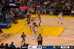 守联防底线被打穿!湖人内线形同虚设 被勇士频频冲筐拿分
