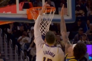 仙人指路!东契奇精准长传助攻拉拉维亚打进加罚 湖人领先到30分