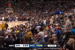 投子认负!末节还剩1分17秒球迷逐渐退场 掘金换下全部主力
