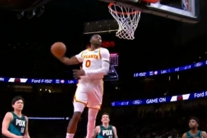 打嗨咯!库明加疾速反击 垫步起飞轻松来个单臂大风车暴扣!