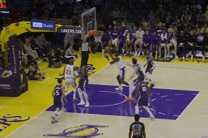 黄油手!詹姆斯突破送妙传 艾顿接球没拿稳最后出手超时