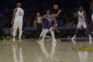 很顽强!詹姆斯传球被断 威少反击上篮追到10分分差