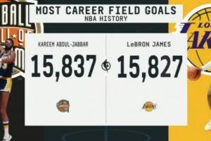 再冲一个历史第一?詹姆斯差11记运动战进球即可超越贾巴尔