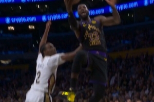 没加罚!詹姆斯反击快下被拉拽仍然上篮打中 裁判没有表示