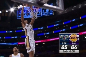 失误有点多!詹姆斯传球又被抢断 墨菲反击暴扣反超打停湖人