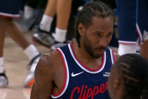 动作有点大!赫夫防守击中伦纳德面部 被吹一级恶意犯规