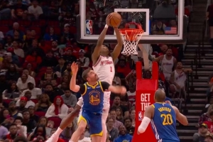 空中作业!申京送抛传 阿门力压斯潘塞双手隔扣
