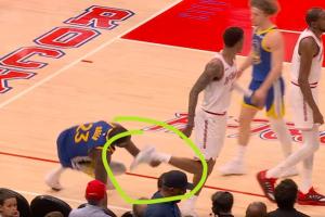 技犯!追梦被小贾撞翻 起身后抓了一下小贾的脚踝!