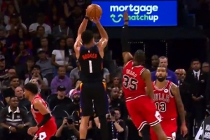 还有悬念!布克借掩护高难度追身干拔三分 太阳追到只差1分!