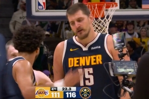 一锤定音!约基奇转身强攻 倚住防守抛投命中率队领先5分