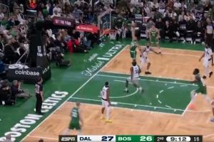 还是不太敢发力!塔图姆中路突击 起身单臂暴扣未果