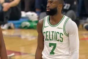 血亏!杰伦·布朗跳球被吹犯规 米切尔两罚全中