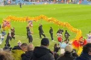 迎接中国春节,曼城主场进行舞龙舞狮表演