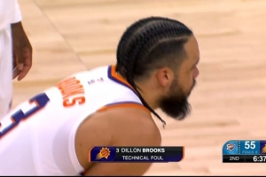 狄龙防守麦凯恩吃T 本赛季第16次技术犯规 要禁赛了