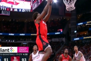 打回来了!泰特顺下接球冲击篮筐得手 火箭反超2分打停快船