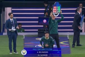 皇马、曼城均半场换人:赖因德斯换萨维尼奥,弗兰·加西亚换门迪