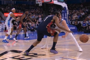哈登持球被大瓦格纳干扰出界&裁判吹魔术球权 骑士挑战成功