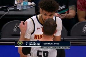 本赛季首T!卡梅隆·约翰逊拉拽加推卡斯尔犯规 回放补吹技术犯规