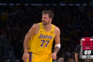 百步穿杨!詹姆斯再送助攻 东契奇加长三分率队领先18分轰停公牛