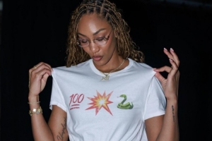 阿贾上身T恤支持阿德巴约砍83分 衣服上印有图案: