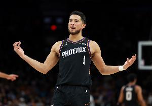 火力靠谱!布克半场12中6拿到17分3板 三分3中2