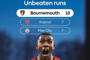 伯恩茅斯10场不败是目前英超最长,曼城和阿森纳都是7场