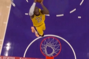 百分连线!东契奇收板0反应时间送出长传 詹姆斯暴扣取分