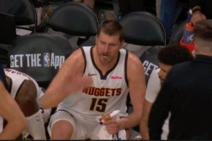 怎么了?暂停时约基奇在替补席情绪十分激动 手舞足蹈说着什么
