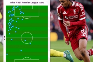 第一次在英超首发!英超官方晒利物浦小将恩古莫哈热区图