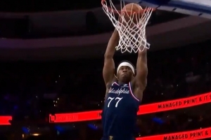 展示劲爆身体素质!埃奇库姆中路空切起飞 双手滑翔暴扣太轻松!