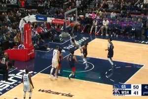 暴力美学!小佩顿空切单臂暴力隔扣 扣完还在筐上转了一圈