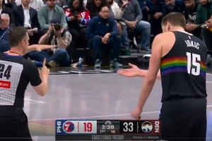 5秒2犯还有1T!约基奇推人再被吹进攻犯规 疯狂抱怨裁判被吹T