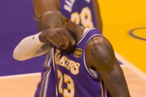 詹姆斯被犯规仍然打板命中替补席狂欢!老詹示意基操勿6快坐下