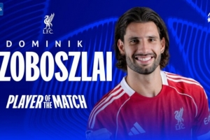 先拔头筹,官方:索博斯洛伊当选利物浦4-0加拉塔萨雷最佳球员