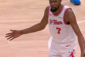 无奈!里夫斯突破造了杜兰特的犯规 后者冲裁判摊了个手