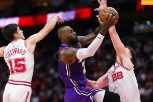 体育资讯3月19日讯 NBA常规赛,湖人客场124-116再胜火箭。