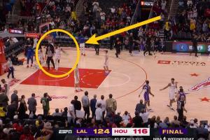 比赛时间走完东契奇投个半场 伊森从替补席助跑一把将球打飞场外
