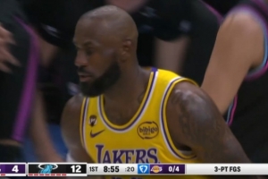 充满电了?詹姆斯接球顺下 腾空而起双手暴扣