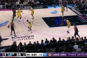 背靠背生龙活虎!詹姆斯冲筐上篮得分 目前已经5中5