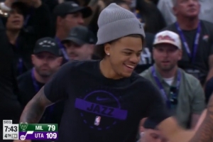 坏了,这没法演了!辛森底角追身三分再进 爵士领先到30分!