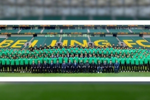 今天的踩场训练之前,一线队、俱乐部和中赫工体全体人员,第一次一起拍摄了一张大全家福。